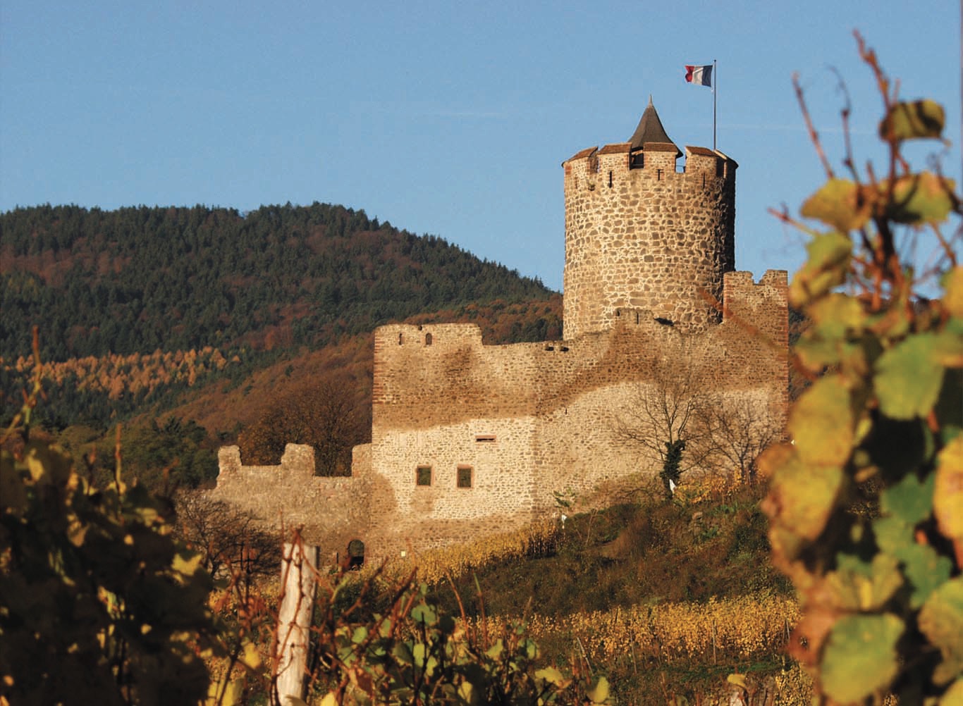 A l'intérieur de ce mur et sous la protection du donjon, admirez également le logis seigneurial avec ses fenêtres en arc brisé ! Mais surtout ne vous privez pas d’une vue magnifique : empruntez l’escalier aux 100 marches qui vous mènera au sommet du donjon pour profiter d’un splendide panorama sur Kaysersberg et le vignoble.